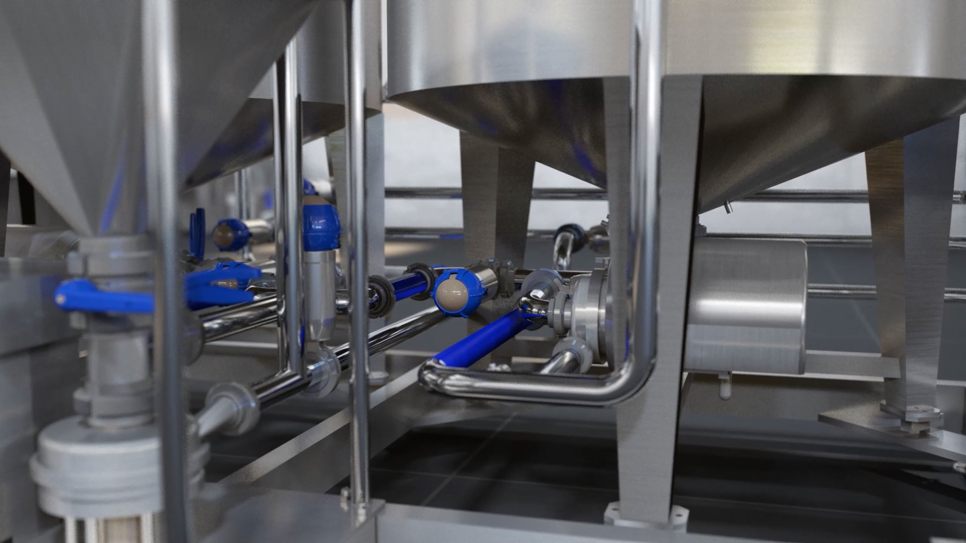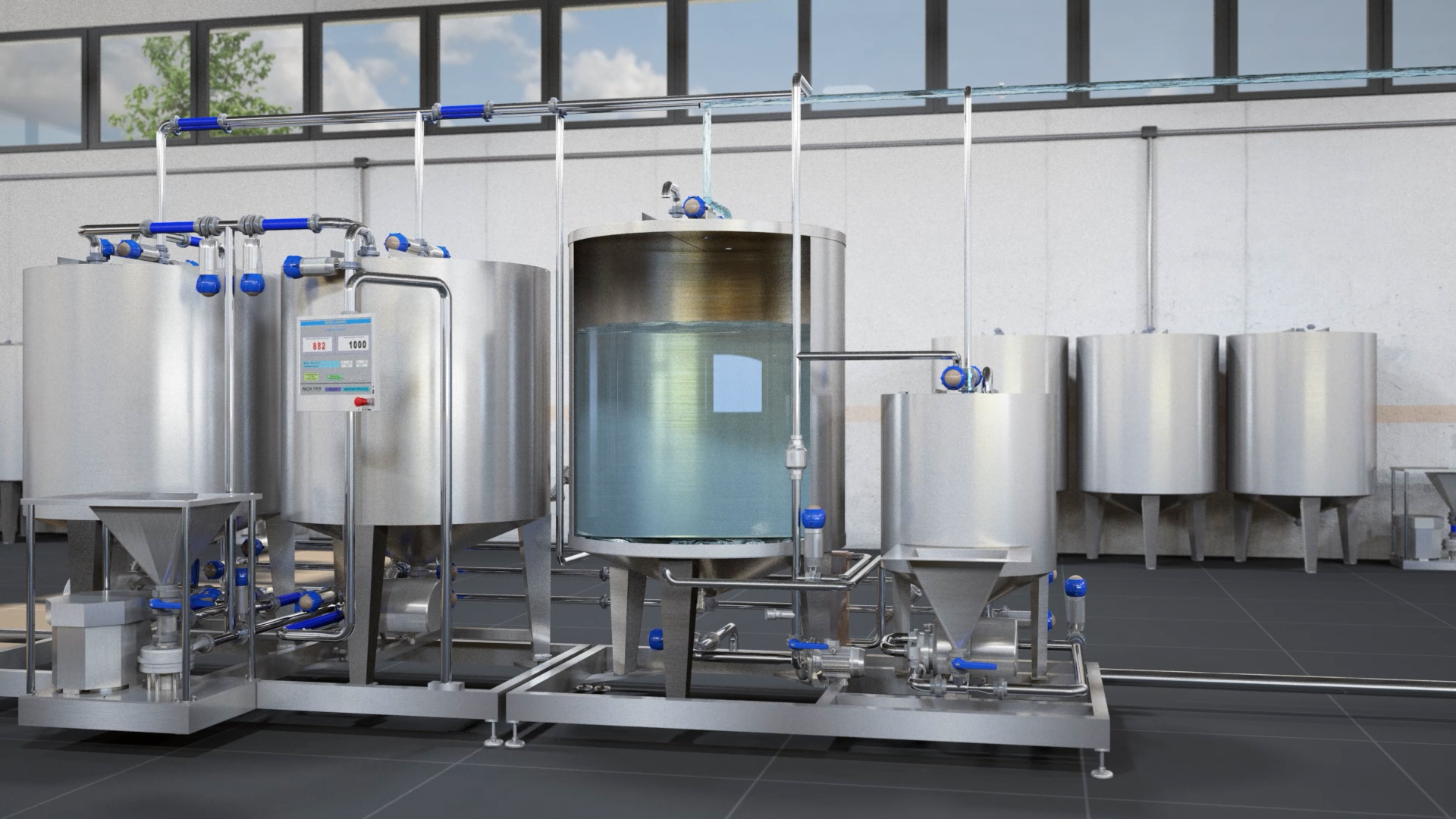 Questo video rendering 3d presenta il funzionamento di un impianto di mixaggio liquidi. Attraverso delle valvole, dei filtri e dei contenitori si sviluppa la funzione di miscelazione.
